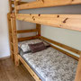 (1 Doppelbett und 1 Etagenbett), 1 Badezimmer, Balkon und einer Wohnküche mit Essbereich und Sitzcouch ausgestattet.